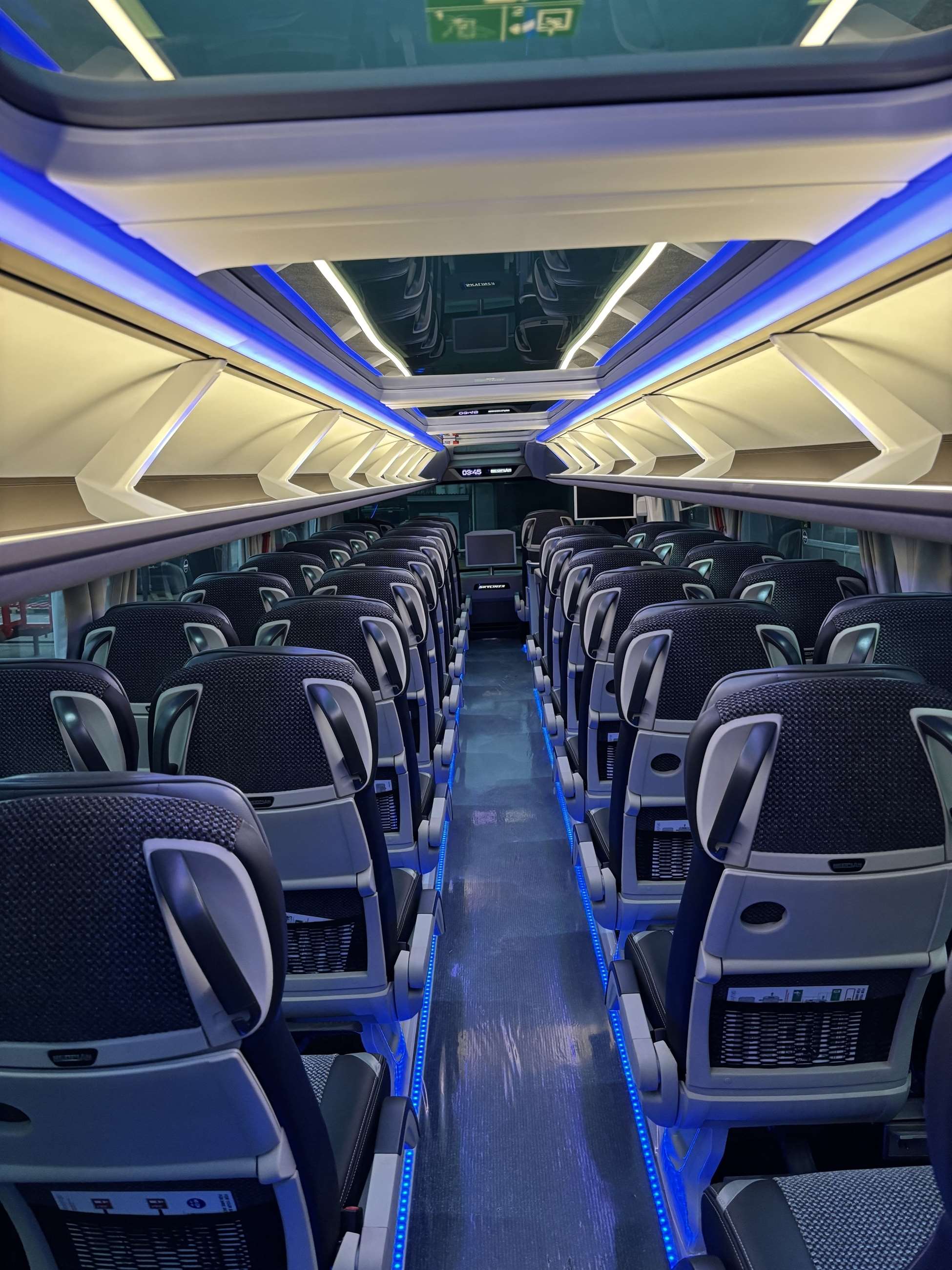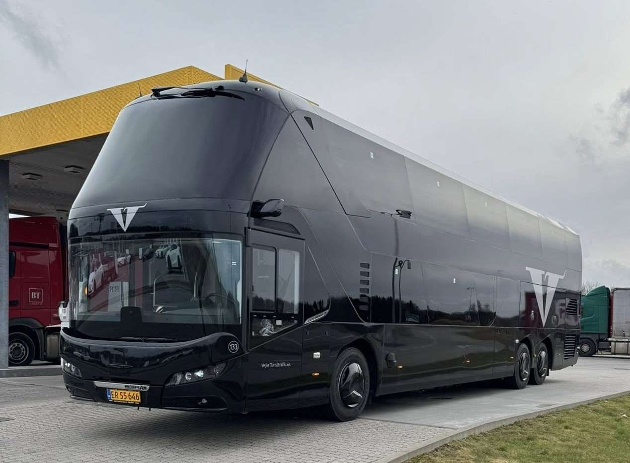 Nu har vi taget den lækre dobbeltdækker i brug, og det er en fornøjelse at kunne tilbyde vores kunder, samarbejdspartnere og passagerer en tryg og behagelig transportløsning i den firestjernede Neoplan Skyliner med plads til 79 passagerer og en rejseleder.